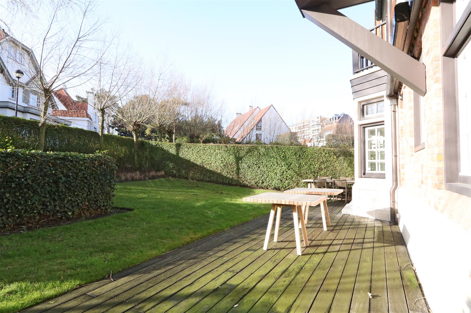 Appartement luxueux dans une résidence unique, emplacement très calme. Proche du centre et de la digue, 3 chambres à coucher, jardin et terrasse orientée au sud. Emplacement inclus dans le bâtiment.