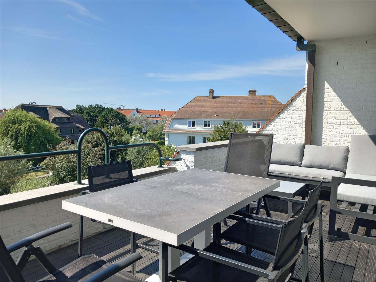 Rustig gelegen appartement op privaat domein 'Tennis Garden' met 4 residenties, mooie tuin en zwembad. Aangename woonkamer uitgevend op het zuidgelegen zonneterras en toegang tot de keuken. 3 slaapkamers en 2 badkamers. Als huurders kan u genieten van het zwembad op het terrein. Staanplaats in gebouw.