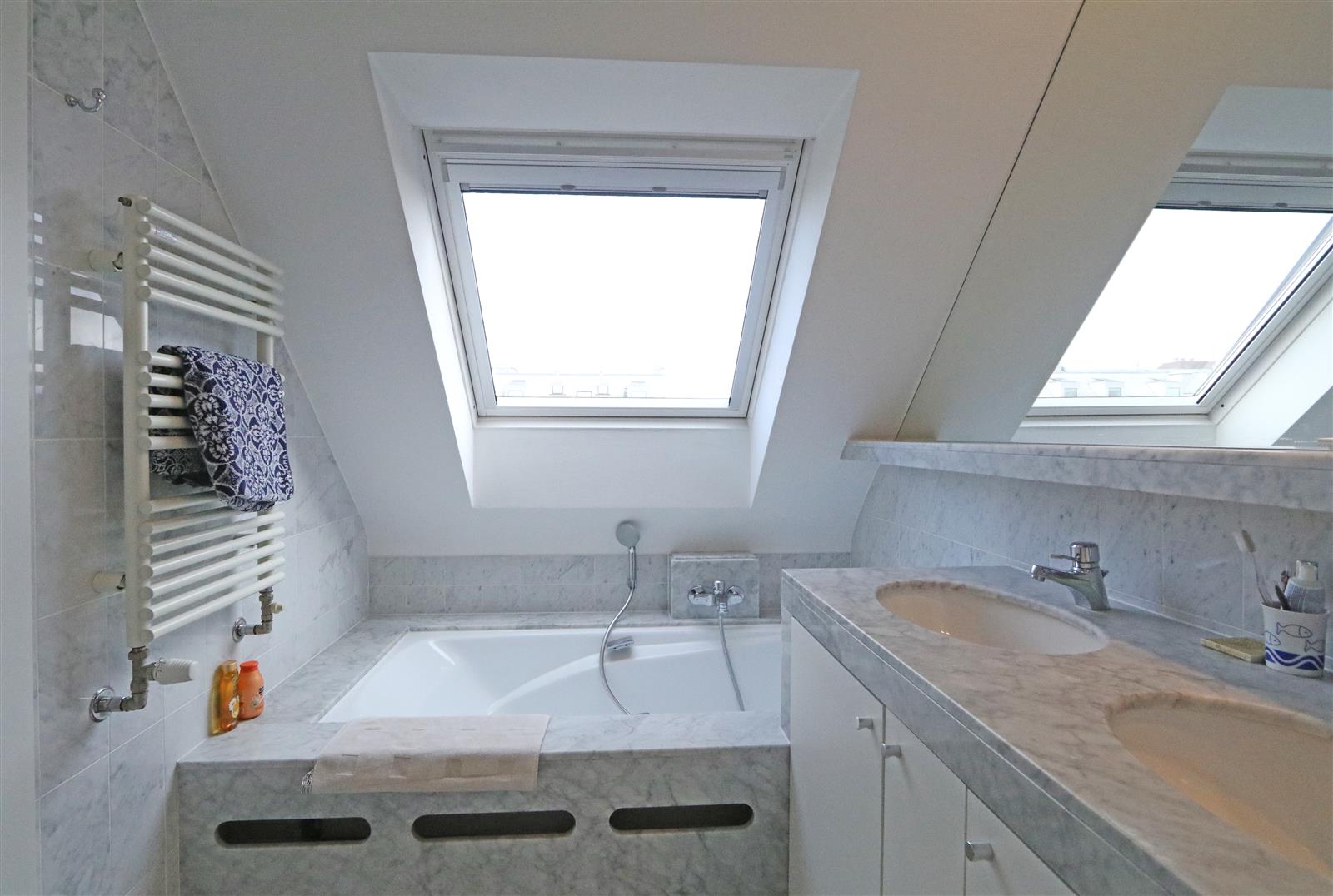Cet appartement duplex spacieux situé sur la Van Bunnenlaan offre une expérience de vie agréable avec deux grandes terrasses. Doté de trois chambres, chacune avec sa propre salle de bain, le confort et l'intimité sont garantis pour tous les résidents. De plus, l'appartement dispose d'une double place de parking dans la résidence.