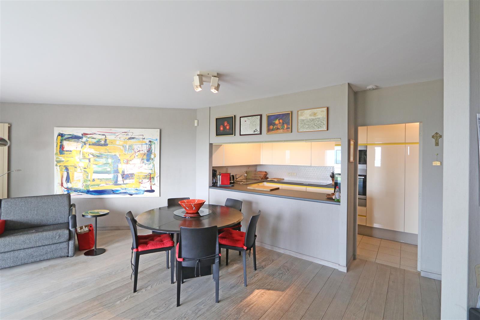 Duplex appartement op de wandeldijk met ruime slaapkamer, slaaphoek in de leefruimte en aparte studio op de 5de verdieping met douchekamer. De ruime terrassen met veel zon en zeezicht maken dit appartement een echte topper. Garagebox inbegrepen.